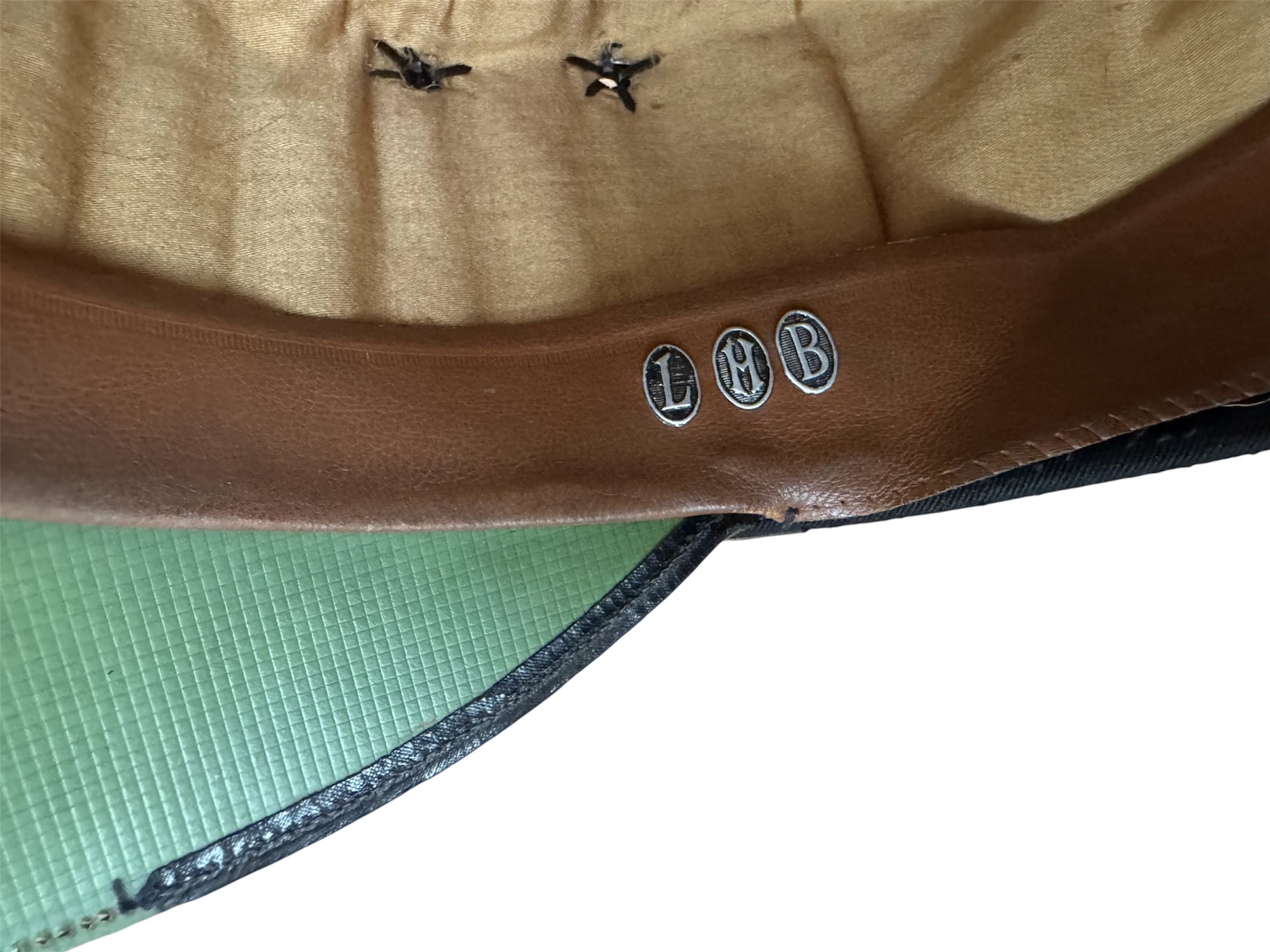 Sommige kleermakers, persten hun bedrijfsnaam in reliëf in de zweetband, dit naast hun bedrijfslogo in de bol van de kepie.